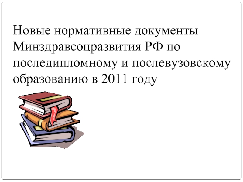Слайд 16Новые нормативные документы Минздравсоцразвития РФ по последипломному и послевузовскому образованию в