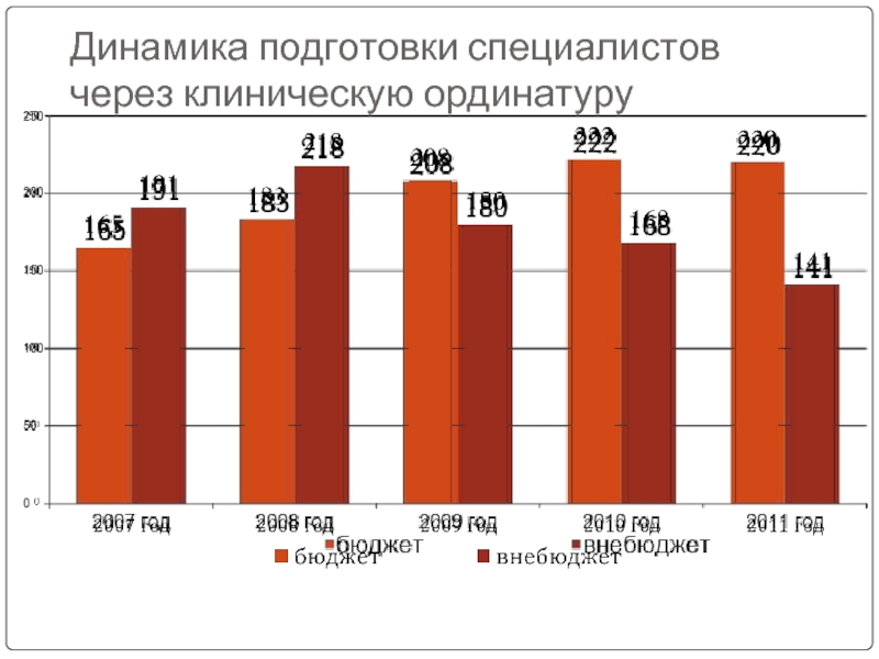 Слайд 10Динамика подготовки специалистов через клиническую ординатуру