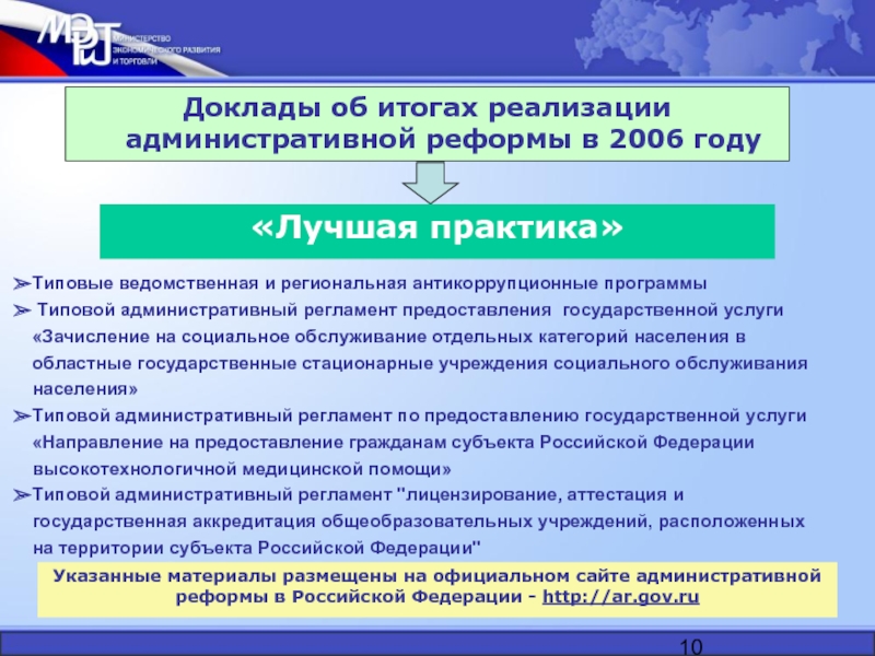Указанные материалы размещены на официальном сайте административной реформы в Российской Федерации - http://ar.gov.ru