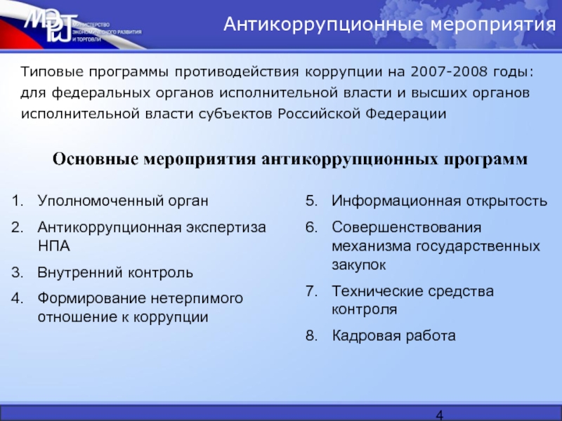 Основные мероприятия антикоррупционных программ