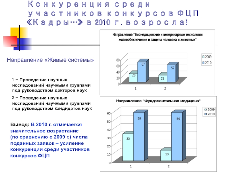 (по сравнению с 2009 г.) числа поданных заявок – усиление конкуренции среди участников конкурсов ФЦП