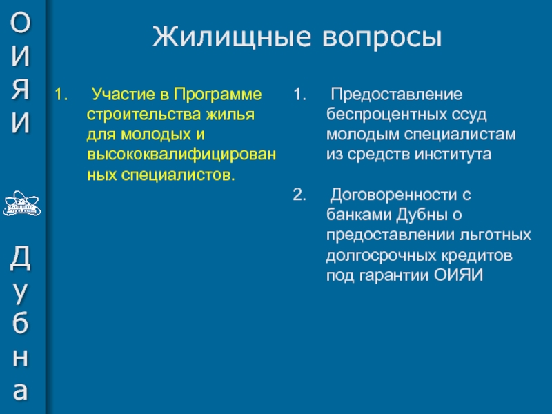 Договоренности с банками Дубны о предоставлении льготных долгосрочных кредитов под гарантии ОИЯИ