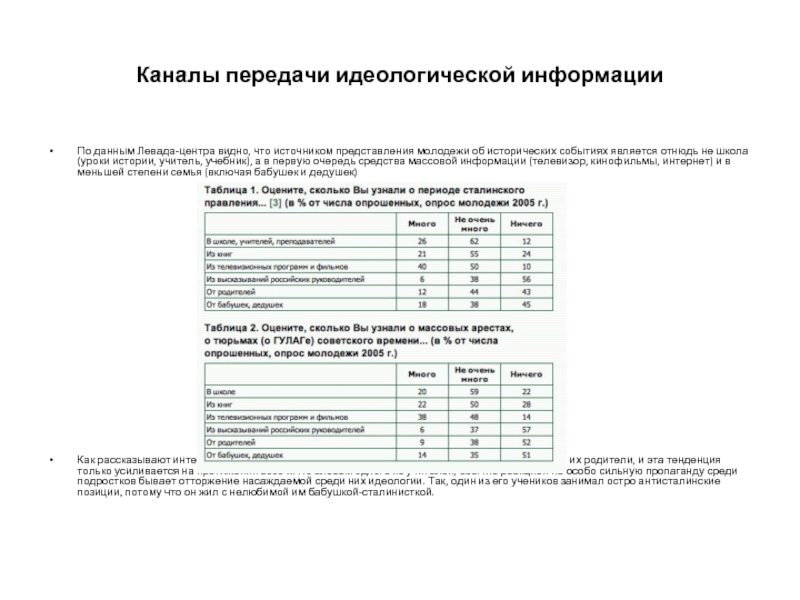 об исторических событиях является отнюдь не школа (уроки истории, учитель, учебник), а в первую очередь средства массовой информации (телевизор, кинофильмы, интернет) и в меньшей степени семья (включая бабушек и дедушек)