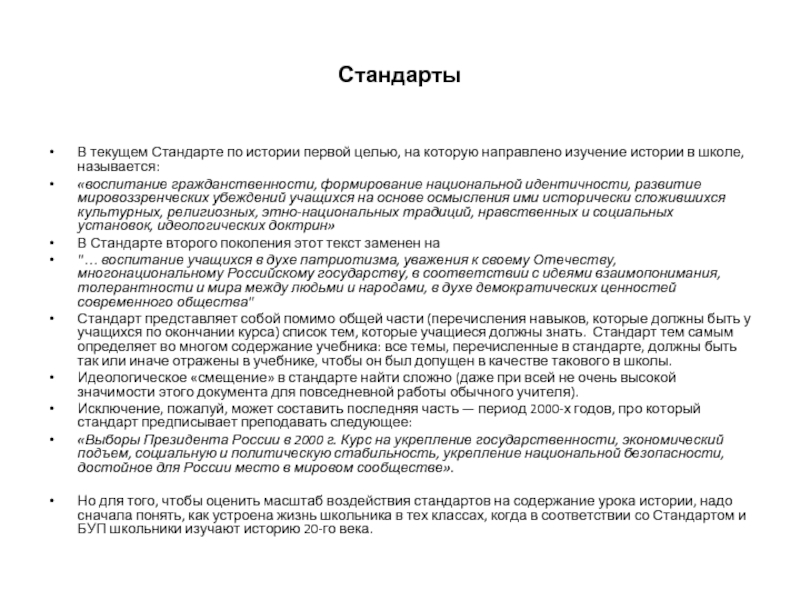 Идеологическое «смещение» в стандарте найти сложно (даже при всей не очень высокой значимости этого документа для повседневной работы обычного учителя).