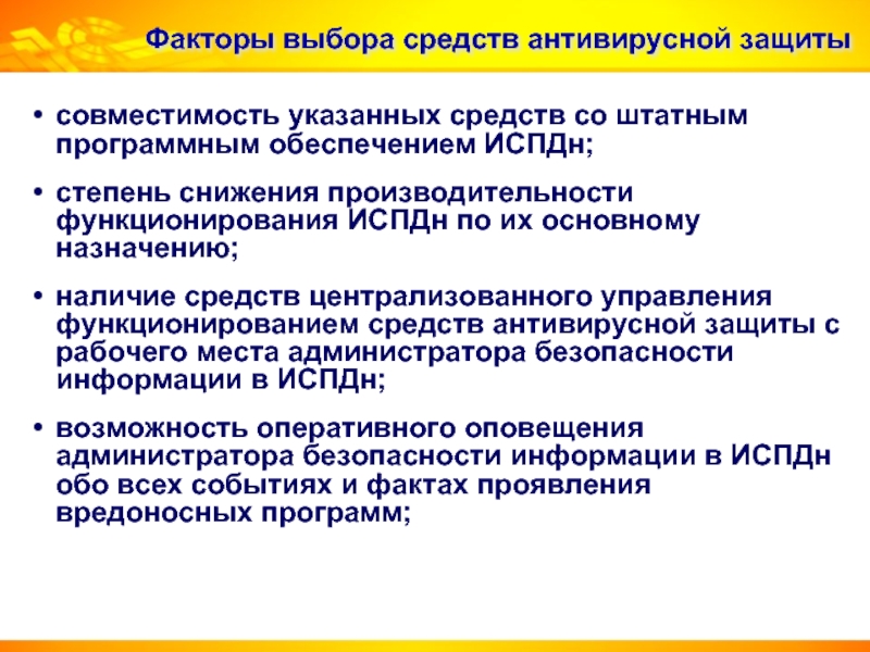 Слайд 9Факторы выбора средств антивирусной защиты