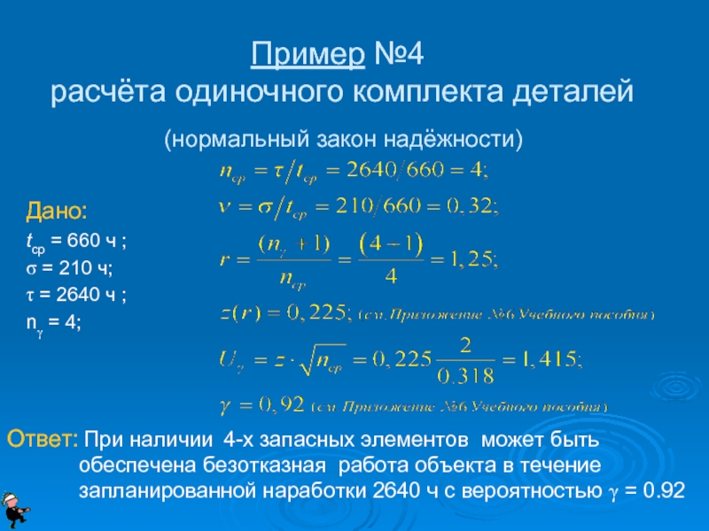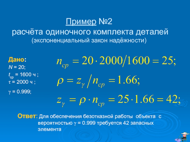 вероятностью γ = 0.99 требуется 37 запасных