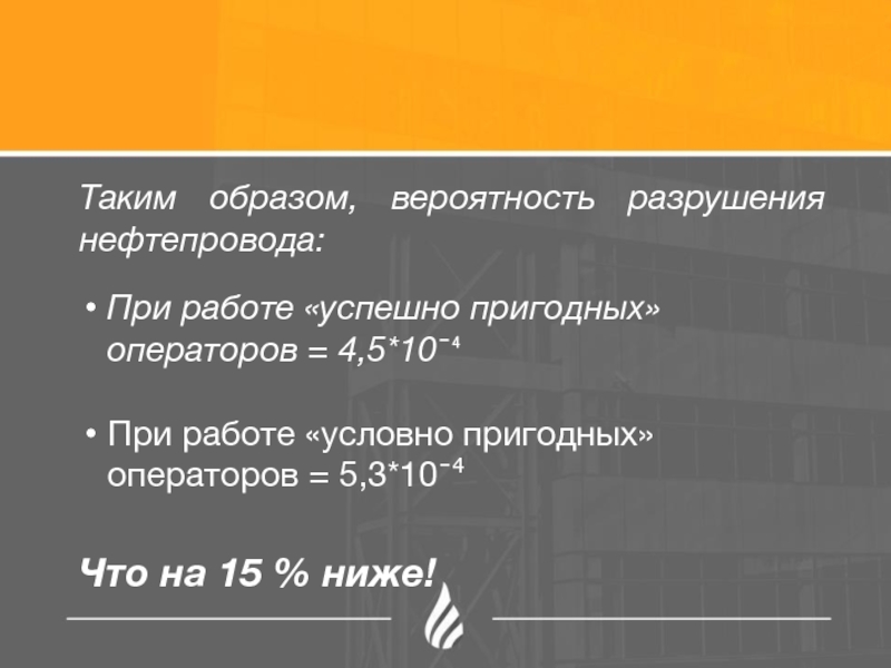 Выяснено, что при работе «успешно пригодных» операторов вероятность разрушения газопровода на 15% ниже, чем при работе «условно пригодных»