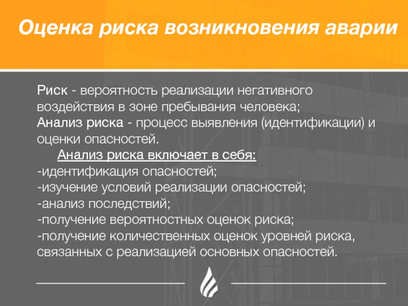 Слайд 20Оценка риска возникновения аварии