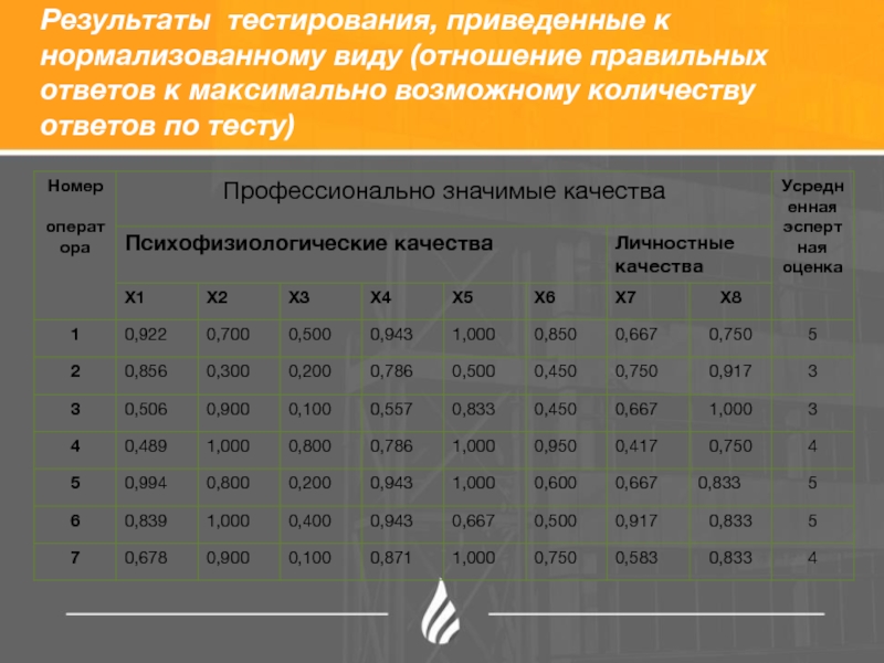 Слайд 8Определение профессионально важных качеств операторов установок НПЗ