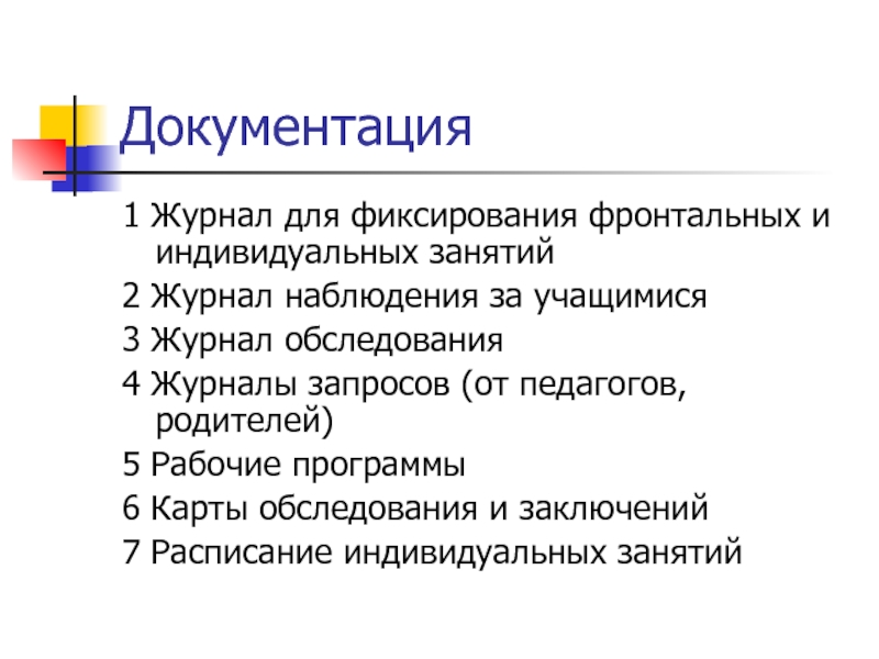 Журнал фиксации занятий (и фронтальных и индивидуальных)
