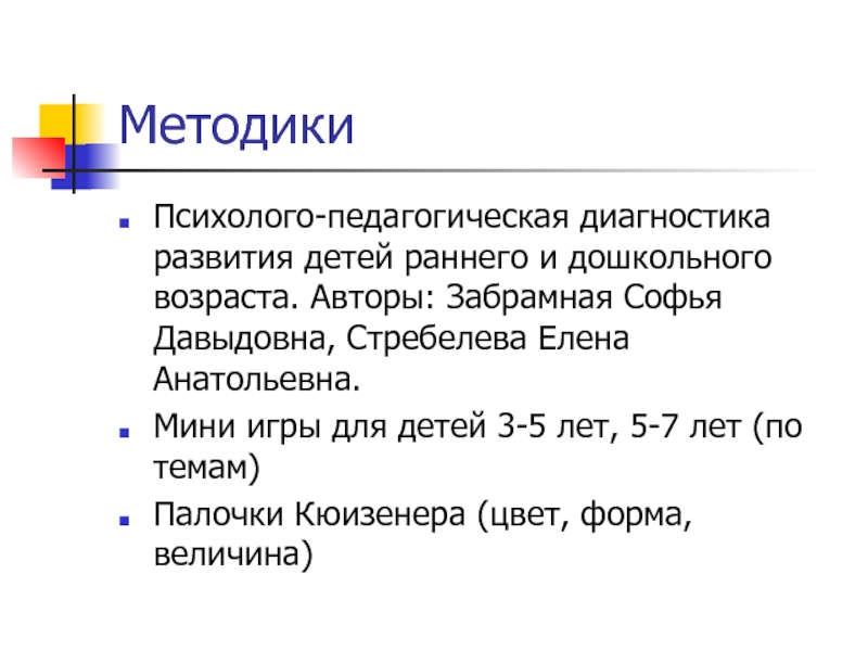 Психолого-педагогическая диагностика развития детей раннего и дошкольного возраста. Авторы: Забрамная Софья