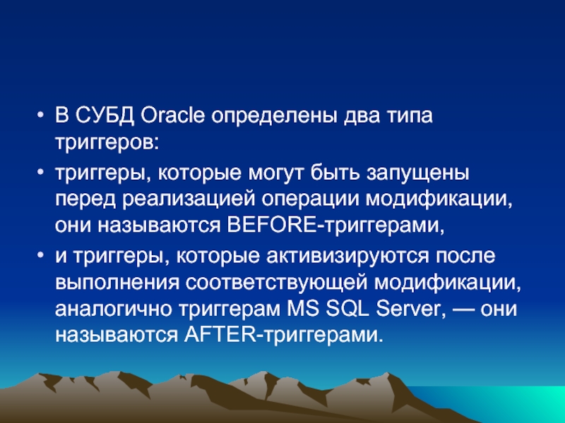 и триггеры, которые активизируются после выполнения соответствующей модификации, аналогично триггерам MS SQL Server, — они называются AFTER-триггерами.