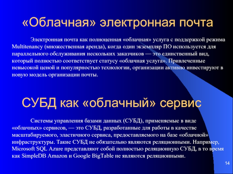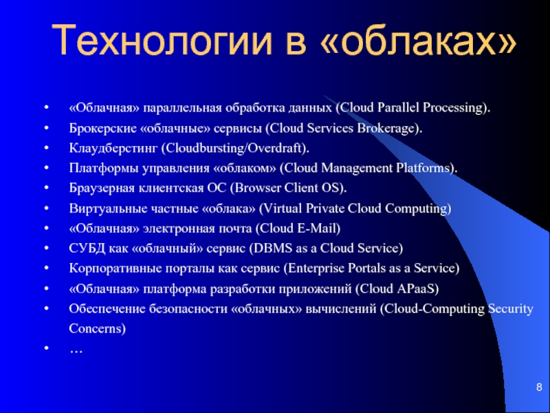 иную услугу, компании должны быть в состоя-нии оценить ее безопасность. Однако большинство «облачных» услуг в значительной мере непрозрачны, что делает для клиентов чрезвычайно трудной оценку их степени безопасности и анализ соблюдения рисков. Отсутствие прозрачности связано с тем, что часто сервис построен на интеграции решений от множества провайдеров в связи с использованием относительно новых технологий, а также географически распределенных дата-центров.