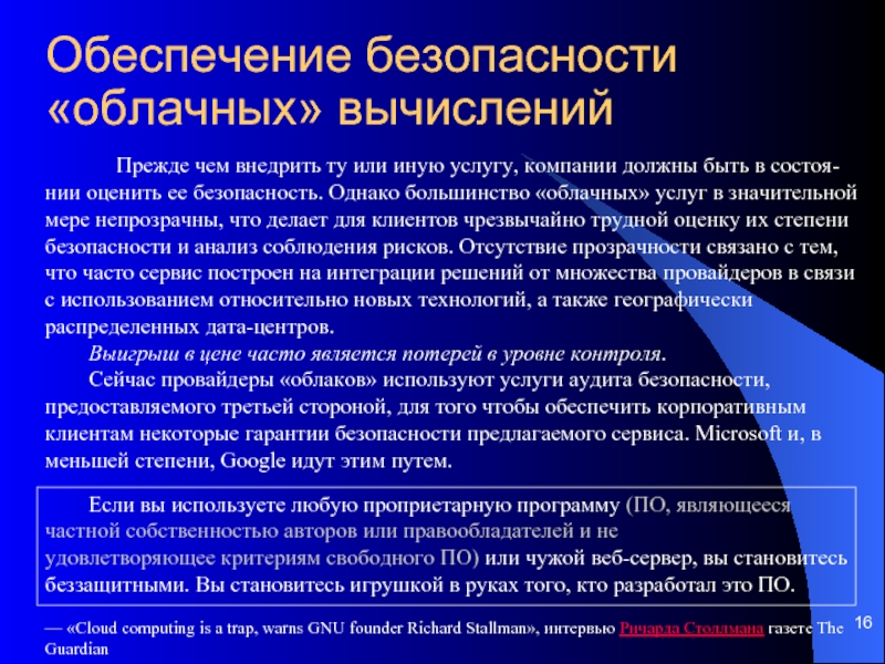 — «Cloud computing is a trap, warns GNU founder Richard Stallman», интервью Ричарда Столлмана газете The Guardian
