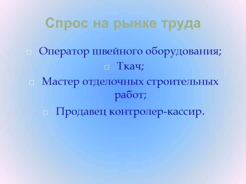 Оператор швейного оборудования – ОАО «Бисер», частные предприниматели;
