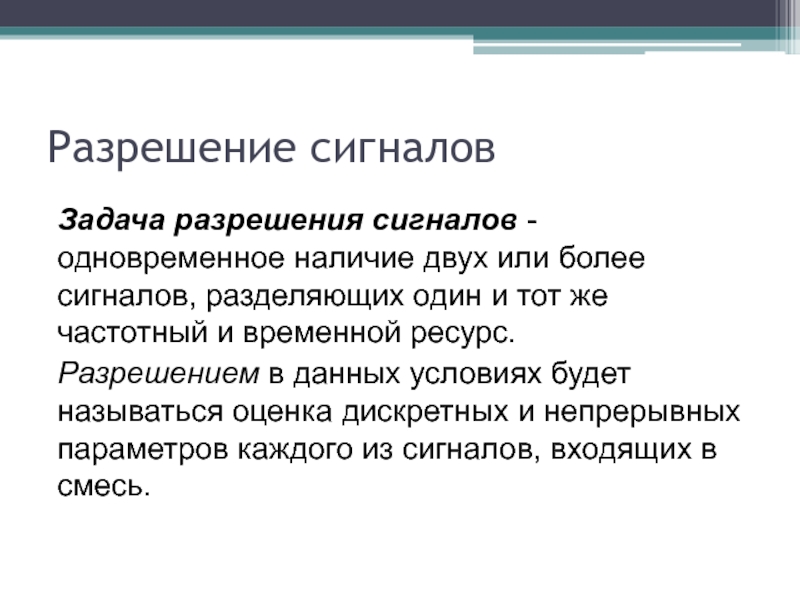 Задача разрешения сигналов - одновременное наличие двух или более сигналов,