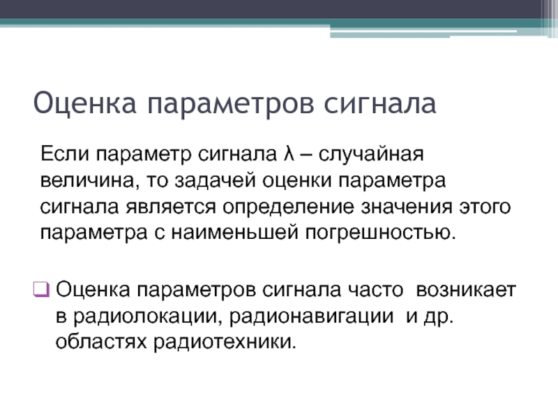 Оценка параметров сигнала часто возникает в радиолокации, радионавигации и др. областях радиотехники.