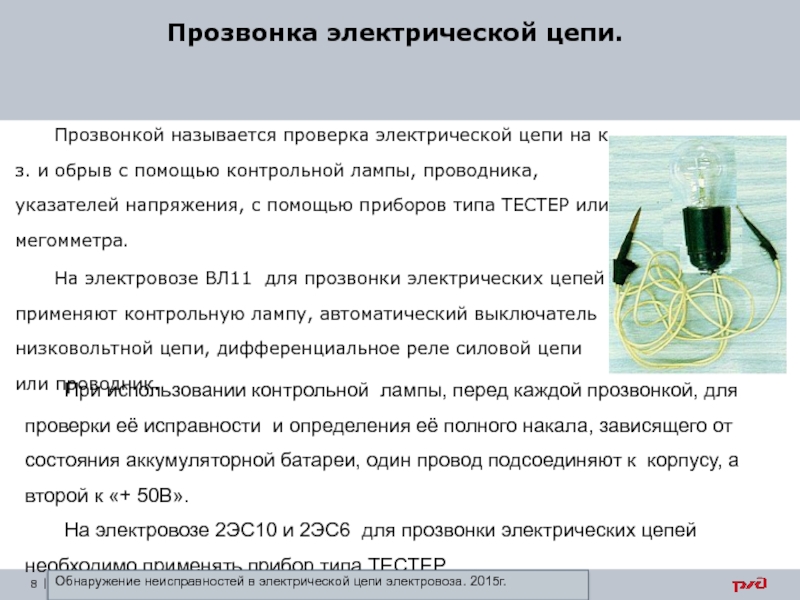 Обнаружение неисправностей в электрической цепи электровоза. 2015г.