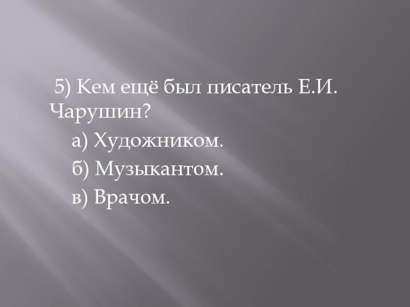 5) Кем ещё был писатель Е.И. Чарушин?