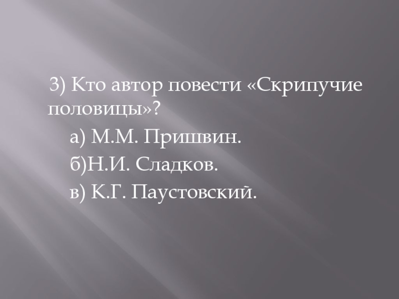 3) Кто автор повести «Скрипучие половицы»?
