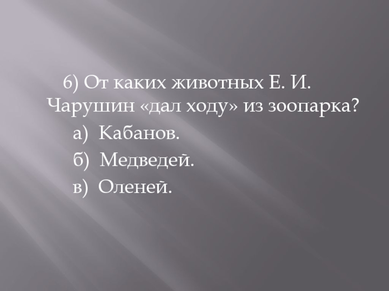 6) От каких животных Е. И. Чарушин