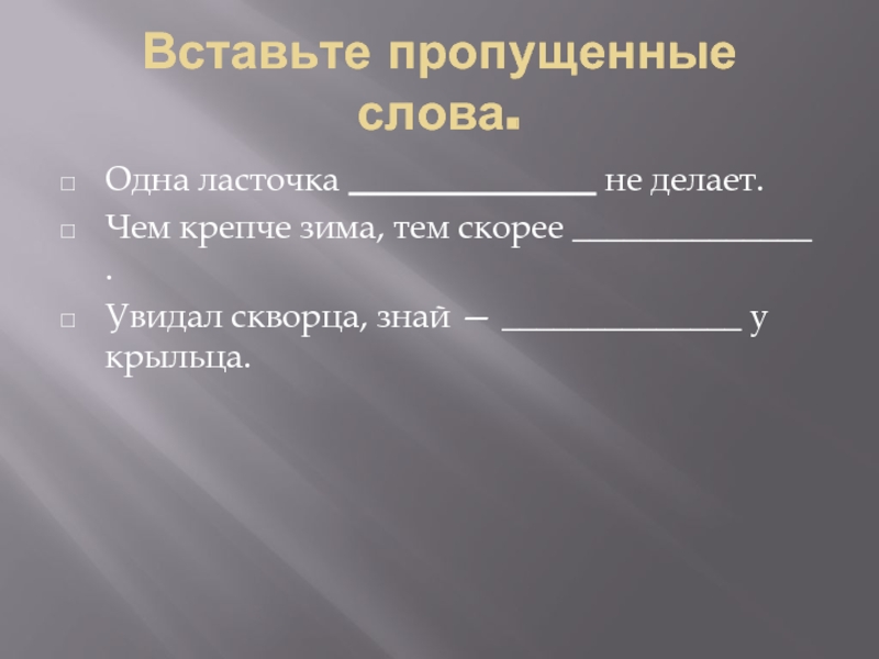 Слайд 19Вставьте пропущенные слова.