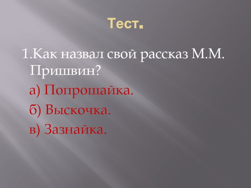1.Как назвал свой рассказ М.М. Пришвин?