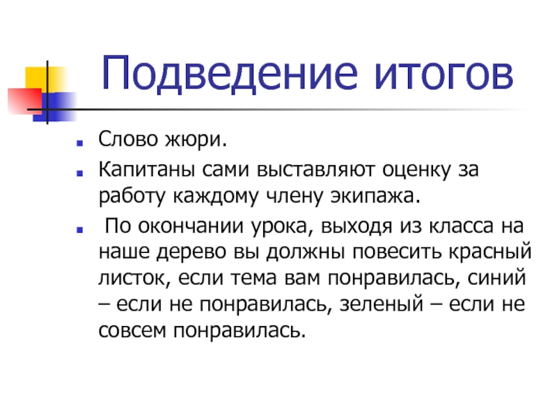 Подведение итогов.