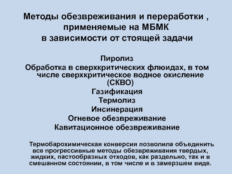 Слайд 5Методы обезвреживания и переработки , применяемые на МБМК