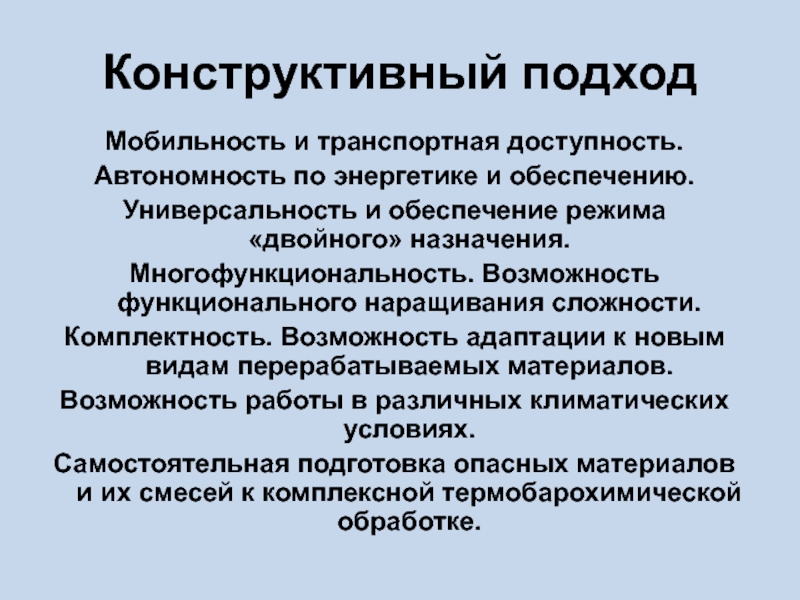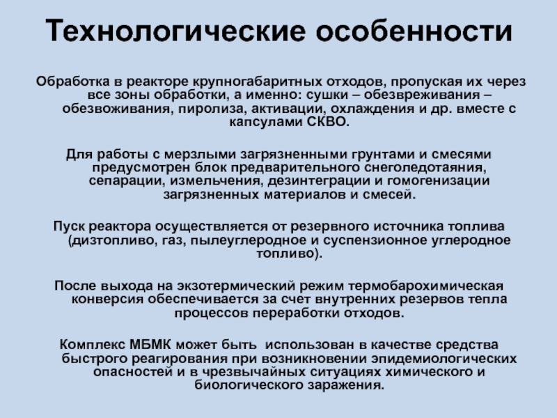 Термобарохимическая конверсия позволила объединить все прогрессивные методы обезвреживания твердых, жидких, пастообразных отходов, как раздельно, так и в смешанном состоянии, в том числе и в замерзшем виде.