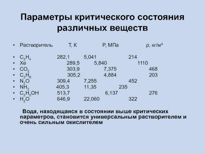 Вода, находящаяся в состоянии выше критических параметров, становится универсальным растворителем и очень сильным окислителем