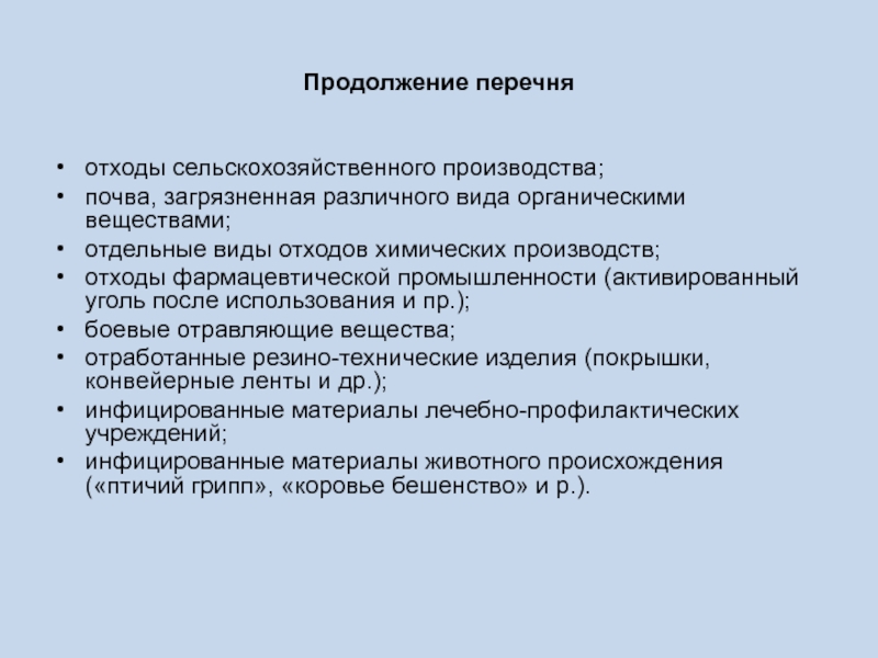инфицированные материалы животного происхождения («птичий грипп», «коровье бешенство» и р.).