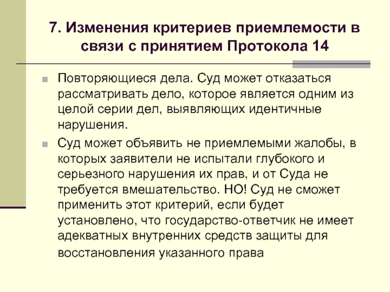 Слайд 107. Изменения критериев приемлемости в связи с принятием Протокола 14