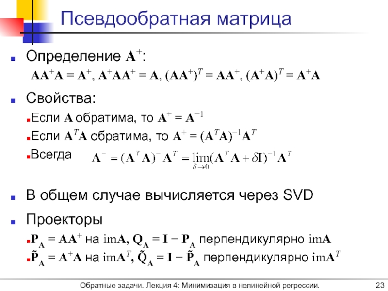 Слайд 23Псевдообратная матрица