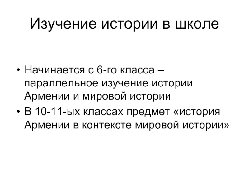 В 10-11-ых классах предмет «история Армении в контексте мировой истории»