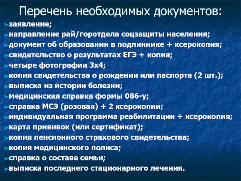 Перечень необходимых документов: