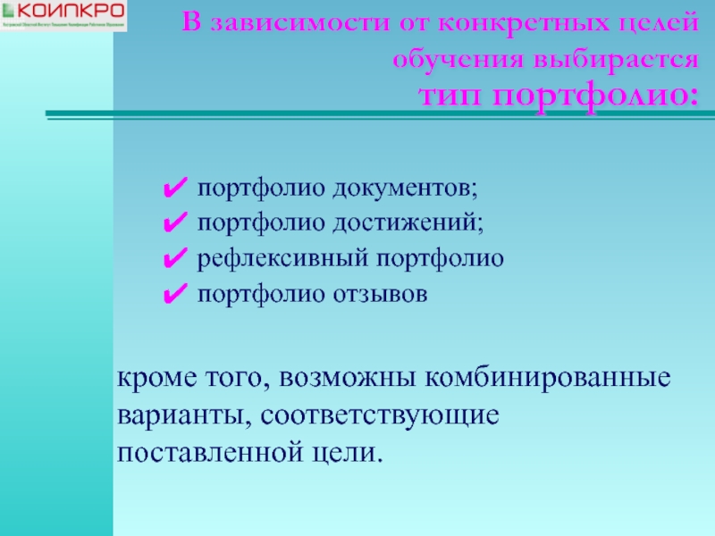кроме того, возможны комбинированные варианты, соответствующие поставленной цели.