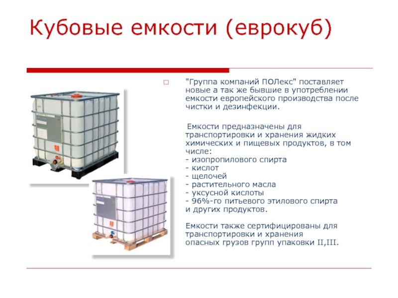 Емкости предназначены для транспортировки и хранения жидких химических и пищевых продуктов, в том числе: