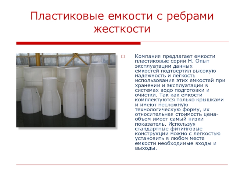 Слайд 9Пластиковые емкости с ребрами жесткости