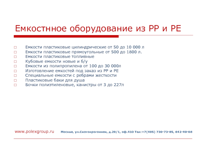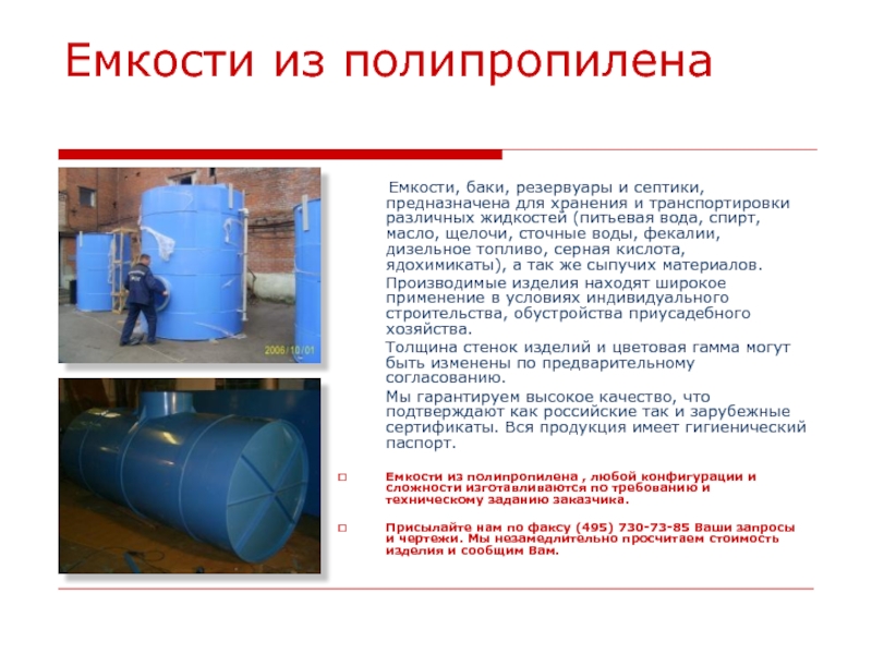 Слайд 3Емкостнное оборудование из РР и РЕ