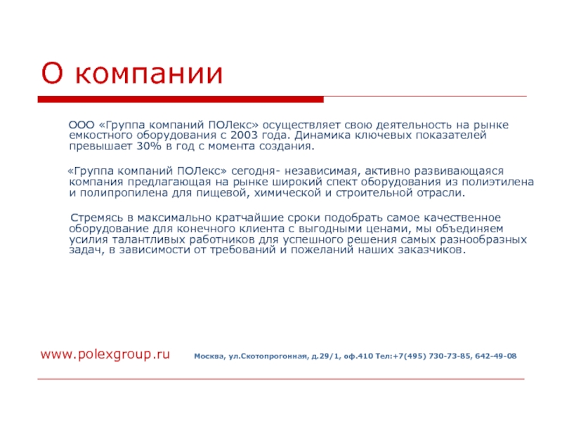 www.polexgroup.ru Москва, ул.Скотопрогонная, д.29/1, оф.410 Тел:+7(495) 730-73-85, 642-49-08