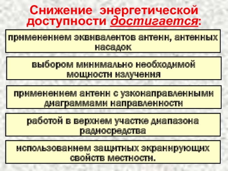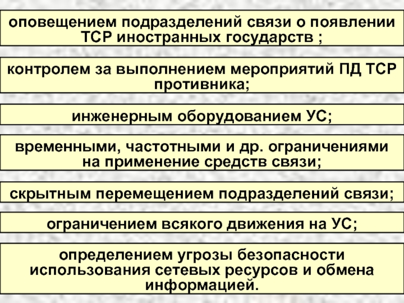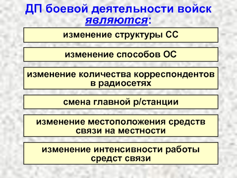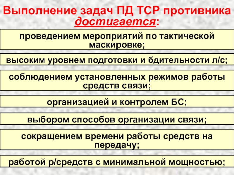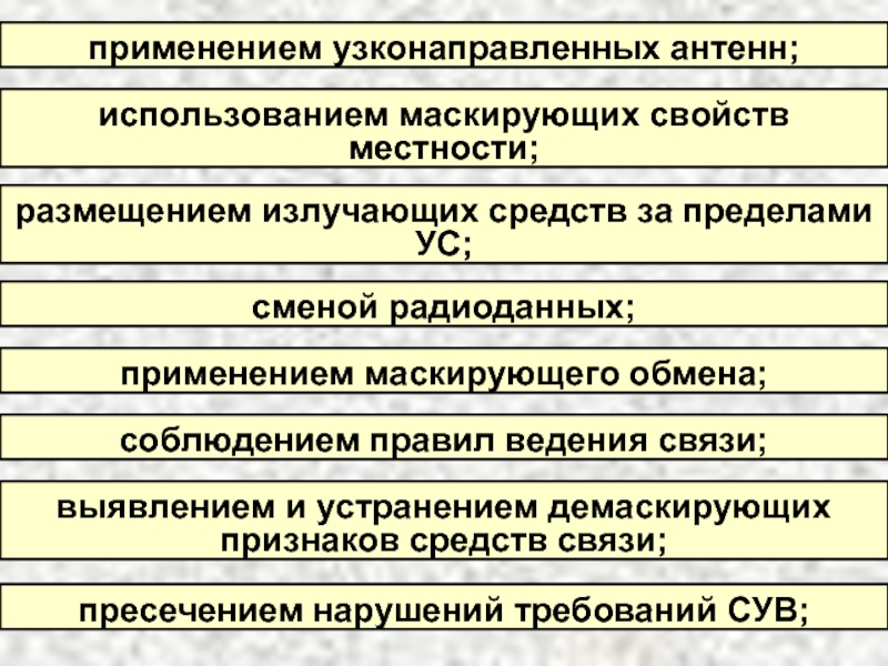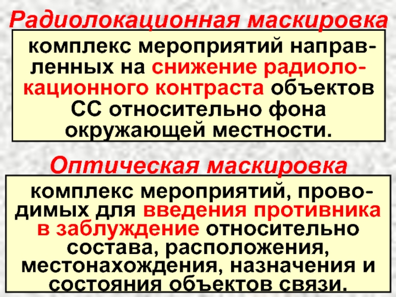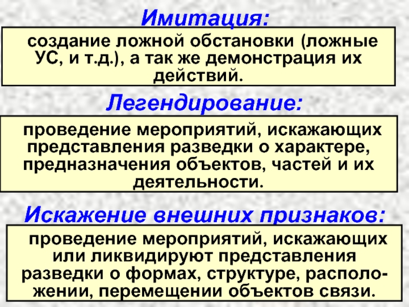 проведение мероприятий, искажающих или ликвидируют представления разведки о формах, структуре, располо-жении, перемещении объектов связи.