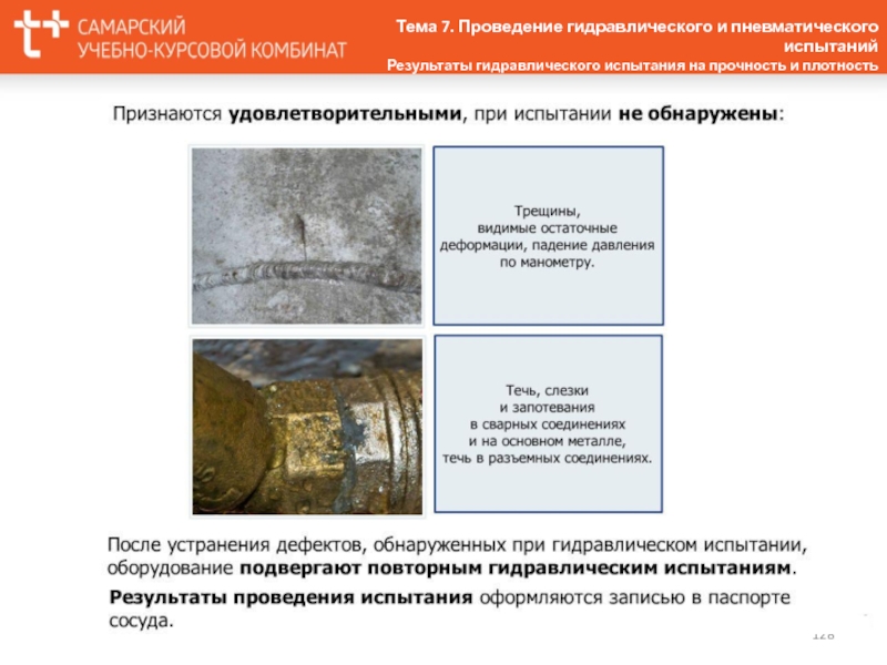 Следы коррозии стенки, трещины, надрывы.