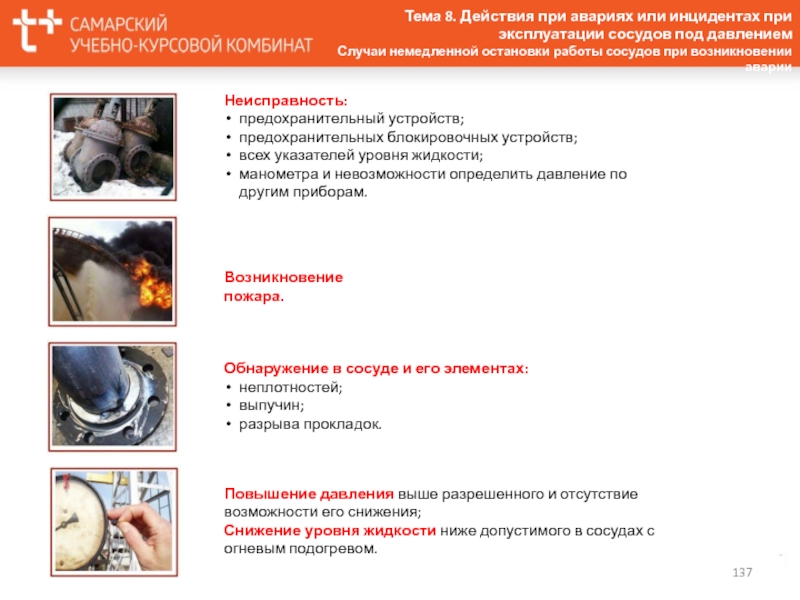 Повреждений, которые могут привести к аварийной ситуации или свидетельствуют о неработоспособном состоянии оборудования.