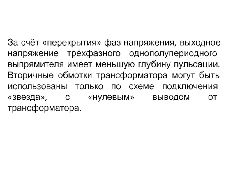 Слайд 33За счёт «перекрытия» фаз напряжения, выходное напряжение трёхфазного однополупериодного выпрямителя имеет