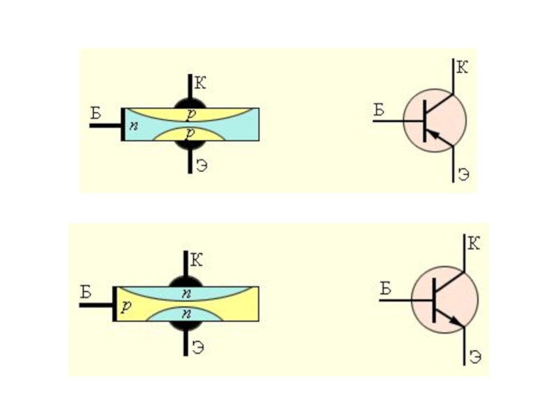Слайд 38Пластинку транзистора называют базой (Б), одну из областей с противоположным типом