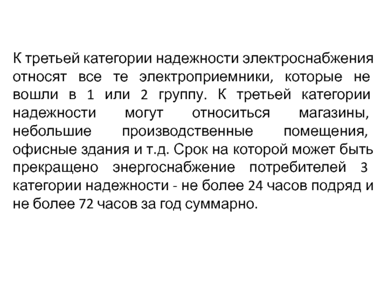 Слайд 10К третьей категории надежности электроснабжения относят все те электроприемники, которые не
