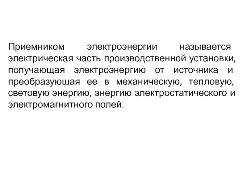Слайд 4Приемником электроэнергии называется электрическая часть производственной установки, получающая электроэнергию от источника