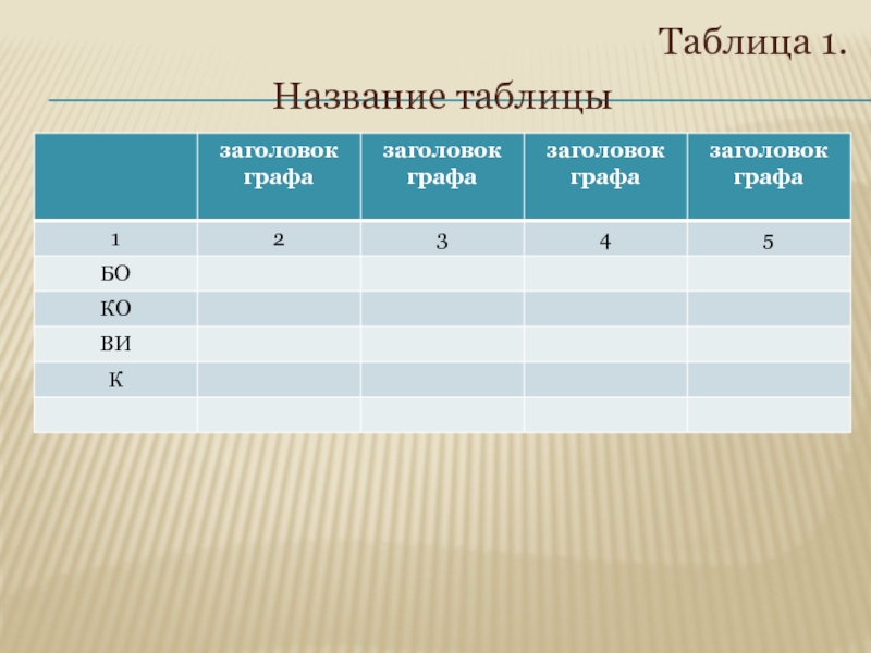 В общем случае таблица должна состоять из следующих основных элементов:
