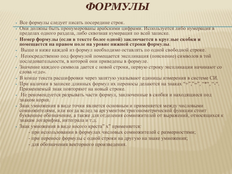 Все формулы следует писать посередине строк.